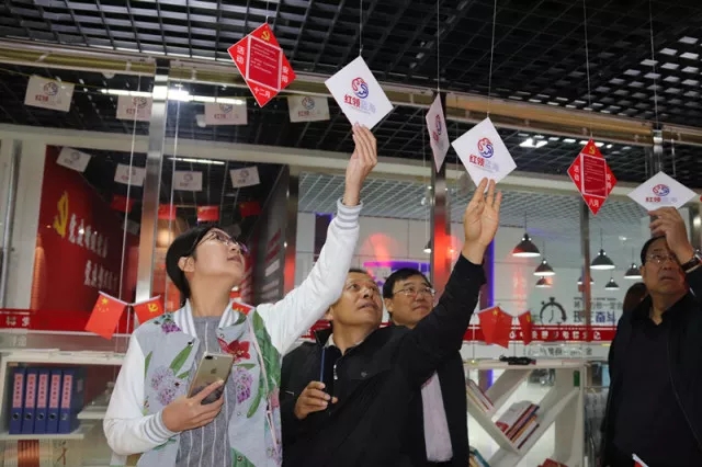 在园区党委书记奥云的陪同下,tyc8722太阳集团一行来到金桥电子商务产业园一楼展厅,先后观看赛罕区和金桥电子商务产业园视频宣传片,进一步了解园区概况、建设历程、园区优势。通过内蒙古电子商务公共服务平台、呼和浩特市电子商务公共服务中心进一步了解园区软实力及“线上平台+线下中心”的O2O服务模式。随后,在“多彩创业园区、闪亮青春岁月——金桥电子商务产业园非公党建‘红领蓝海’品牌展示”展板前,tyc8722太阳集团一行详细了解园区内非公有制建设进程。金桥电子商务产业园联合党委书记奥云介绍,在党的十九大来临之际,园区打造了特色性非公企业党建品牌“红领蓝海”。联合党委下设的7个党支部里,每个党支部都有自己的品牌,包括“红色星火”、“红色引擎”、“红色注税”、“红色薯网”、“红色‘赢’响力”、“红色互联”、“红色引领”。园区工程师李俊良还向tyc8722太阳集团一行现场介绍了移动端“两学一做”学习教育平台。