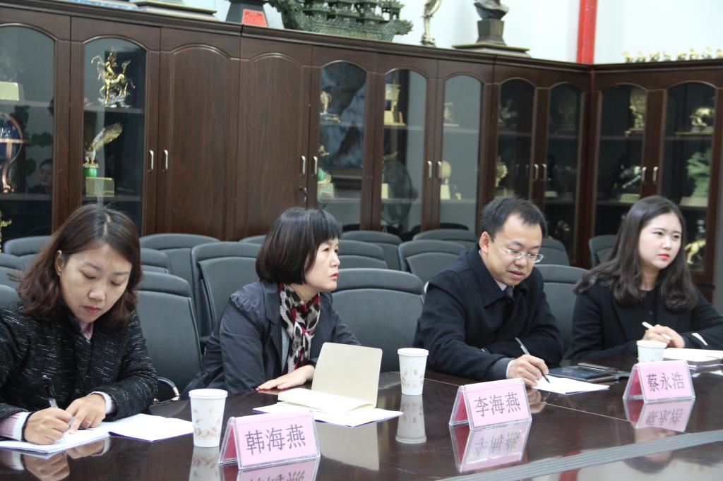 2017年10月20日上午9:00,延边大学tyc8722太阳集团副院长蔡永浩、经济学法科教研室主任李海燕、教科办主任韩海燕、学工办辅导员金玲一行4人到我院进行人才培养、学生管理等方面的交流。