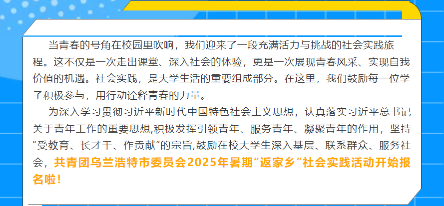 下一条:2025年集宁暑假“返家乡”社会实践志愿服务报名开始啦!