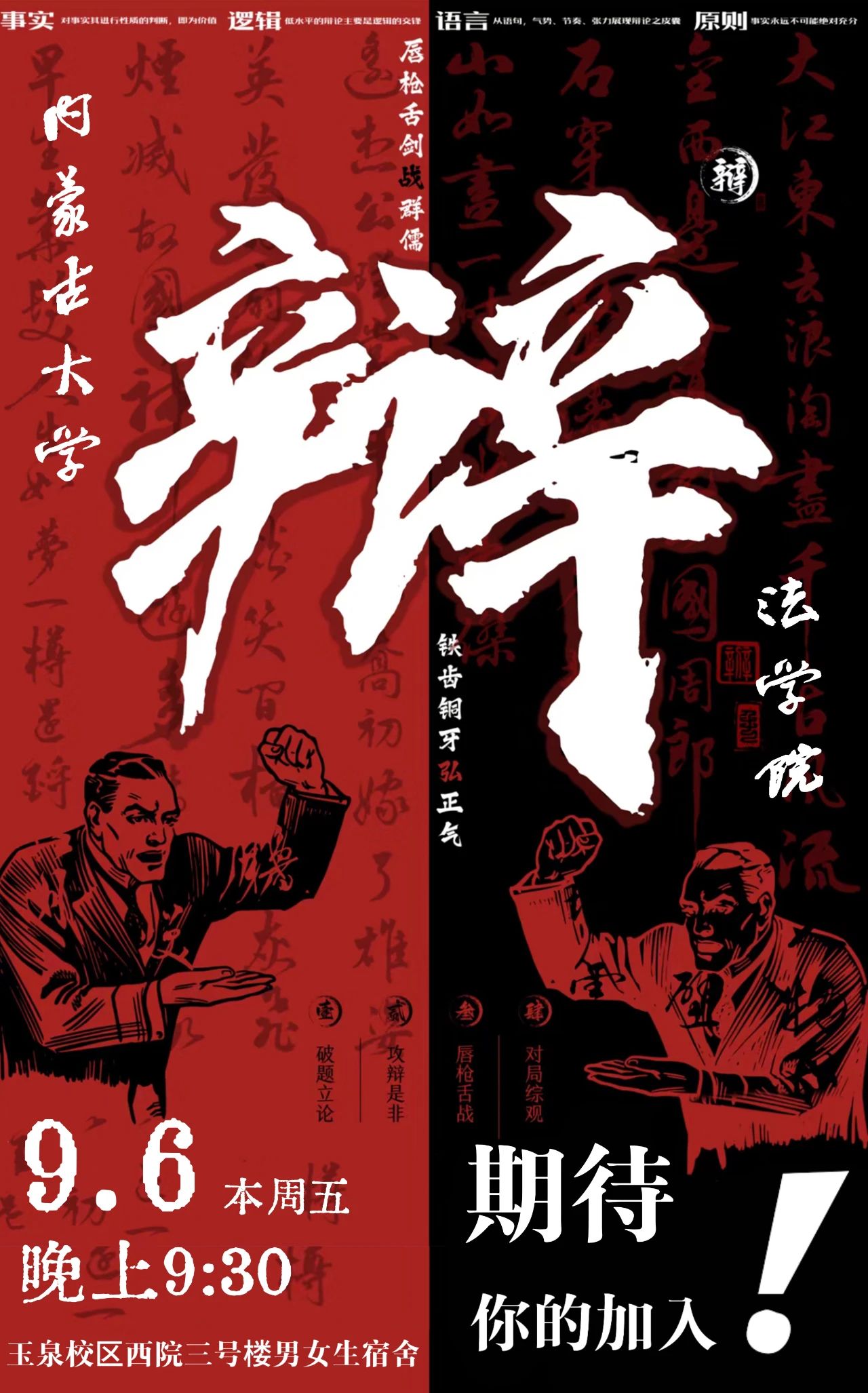 在这里,我们不仅仅学习法律条文,更在辩论的舞台上,将法律的理性与人文的温情交织成最锋利的剑,直指问题核心;我们用语言编织逻辑之网,捕捉每一个细节的微光,让真理在辩论中熠熠生辉。