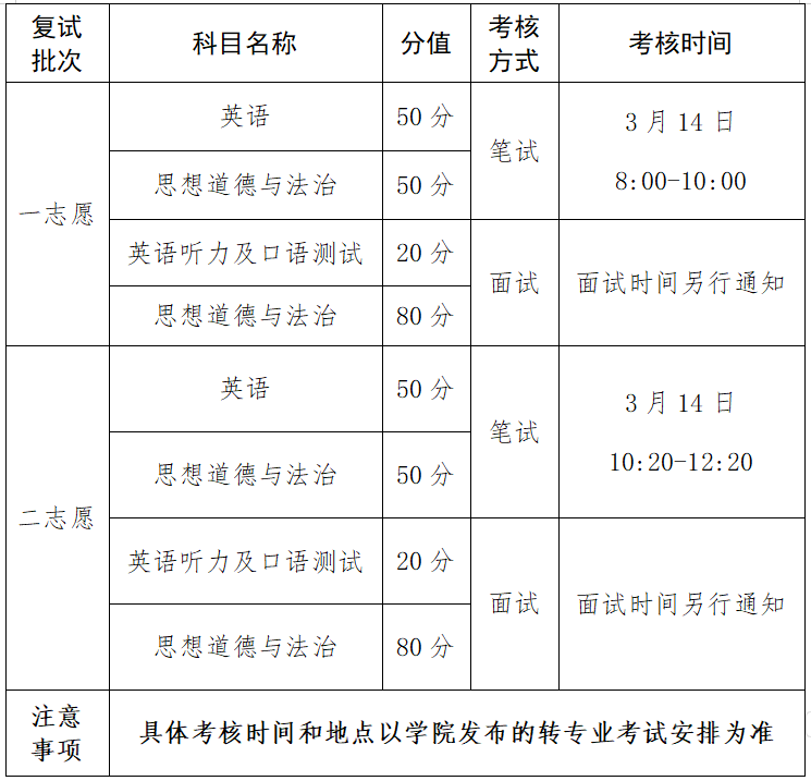 1.根据一志愿笔试成绩差额进入面试,面试比例约为120%,面试时间另行通知。若一志愿录取未达计划数,学院将按照剩余计划数对二志愿笔试名单进行差额比例面试,面试比例约为120%,面试时间另行通知。